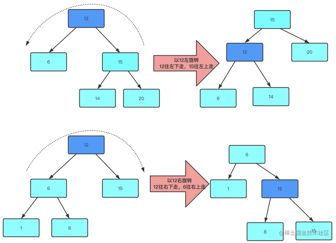 红黑树要求新插入数据颜色是红色,黑色是改变后的结果。红黑树的核心是左旋跟右旋。