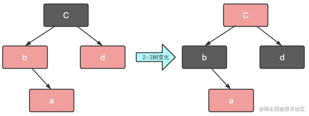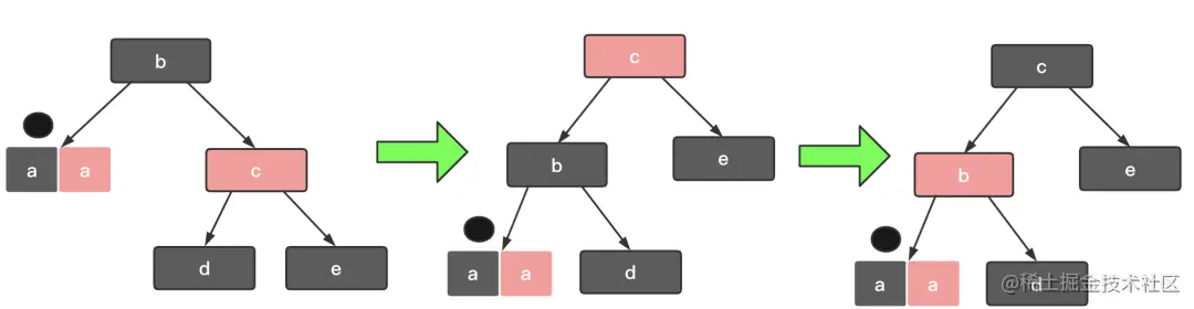 - 给关注节点 a 的父节点 b 添加一个黑色,这个时候节点 b 就变成