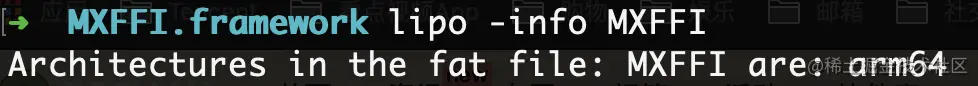 MXFFI二进制文件的同级目录下打开终端,输入命令lipo -info MXFFI