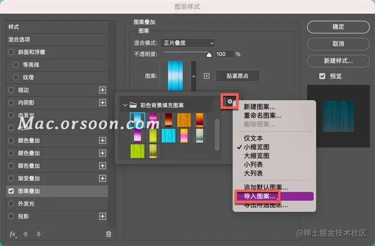 在混合模式中,选择正片叠底(效果是将ps图案置于图片底层)