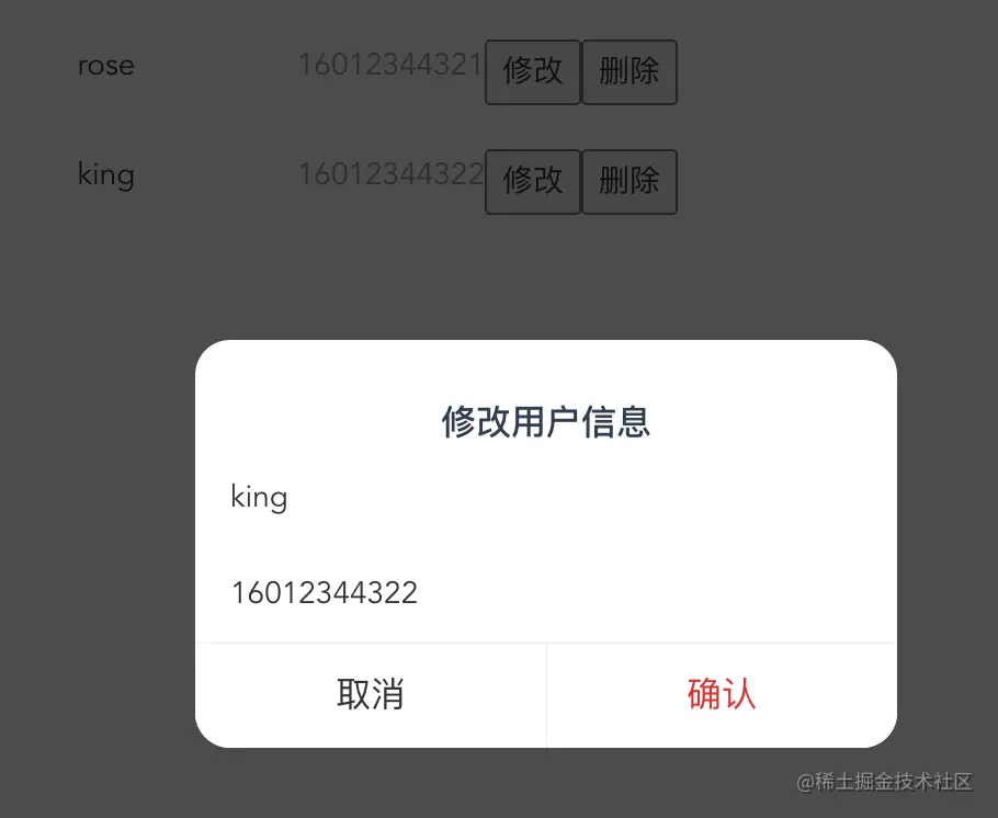 <van-dialog v-model="dialogShow" title="修改用户信息" show-cancel-button :before-close="beforeClose">
