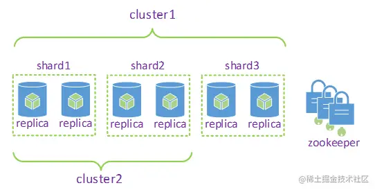 在介绍之前,我们首先要有个思维转变,ClickHouse集群和通常理解的集群是有差异的。比方说Hadoop集群由2个NameNode和多个DataNode组成的完备且独立的集群,业务可以直接交互访问;而对于多个ClickHouse节点组成的集群,它们是没有中心节点,更多的是一个静态资源池的概念,业务要使用ClickHouse集群模式,需要预先在各个节点的配置文件中定义cluster信息,等所有参与的节点达成共识,业务才可以正确的交互访问,也就是说配置文件中的cluster才是我们通常理解的“集群”概念。