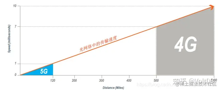 网络技术受到光速的限制,光速在真空中一毫秒内可以传播181英里,而在光纤中只能在一毫秒内传播约54英里。这意味着1毫秒的延迟,5G网络理论上最多只能在54英里以内的设备间通信。