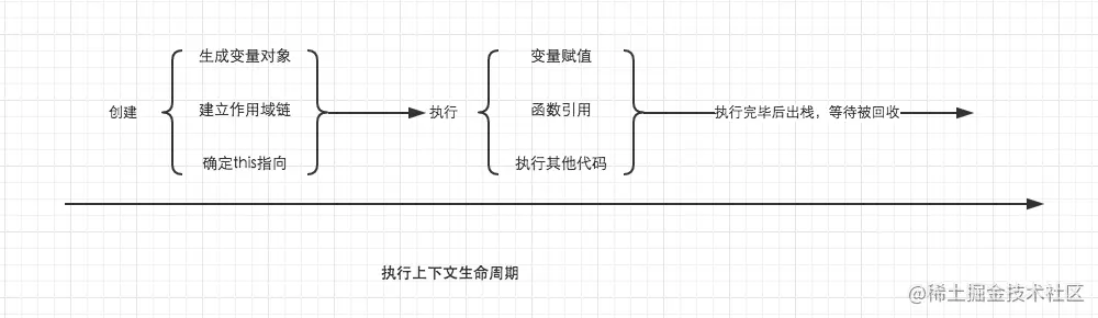 执行上下文中有三个重要的属性,变量对象(Variable Object),作用域链(scope chain),this(this binding),我们可以表示为