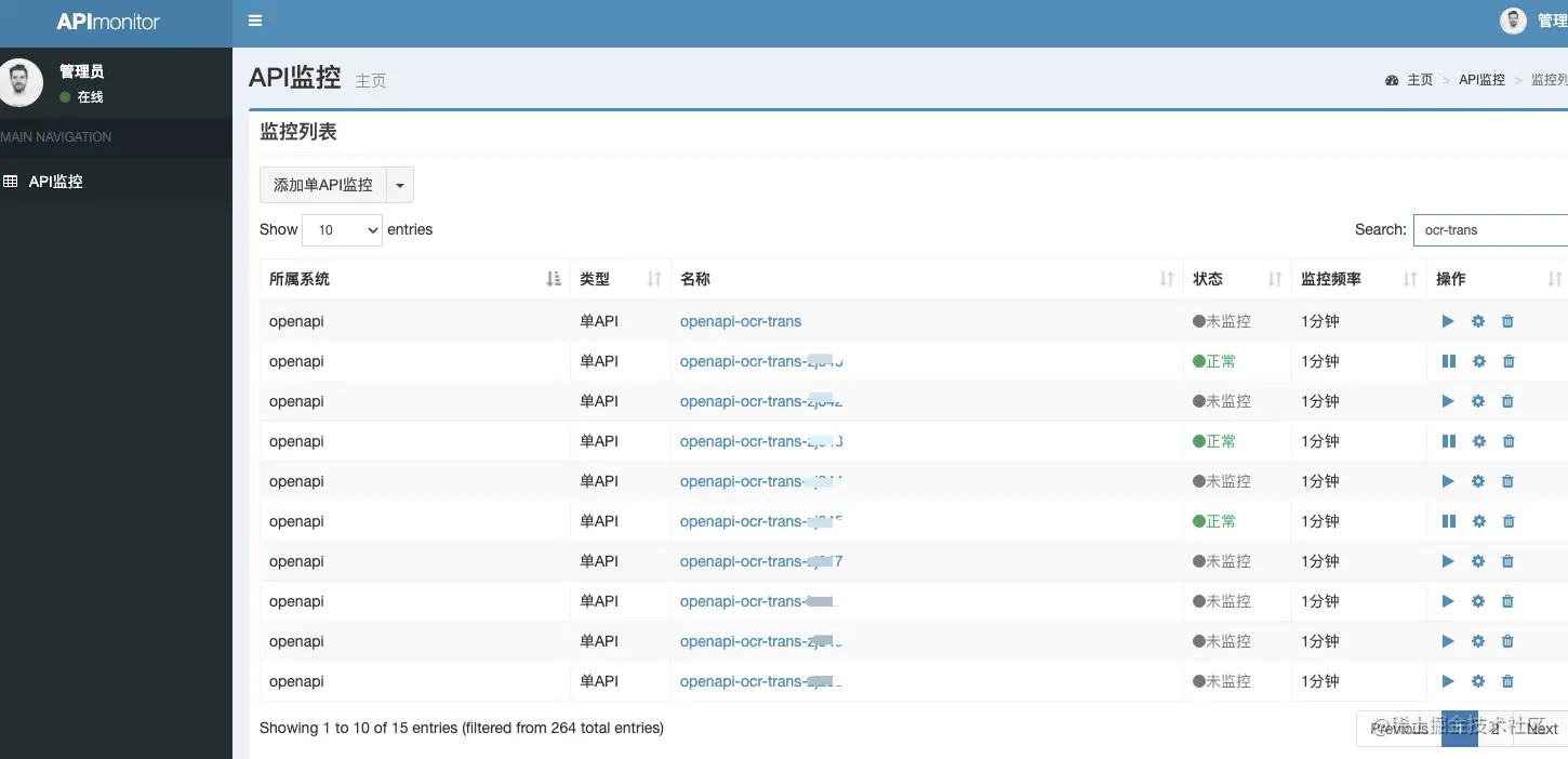 监控service级别是单API,则自动生成的是单API,service级别是多API,则自动生成的是多API监控。