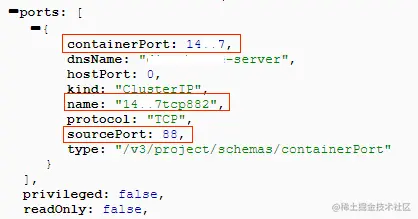 我们分析了rancher提供的服务API文件后发现,在端口的配置信息中,port.containerPort为服务的监听端口,port.sourcePort为pod的监听端口,port.name包含port.containerPo