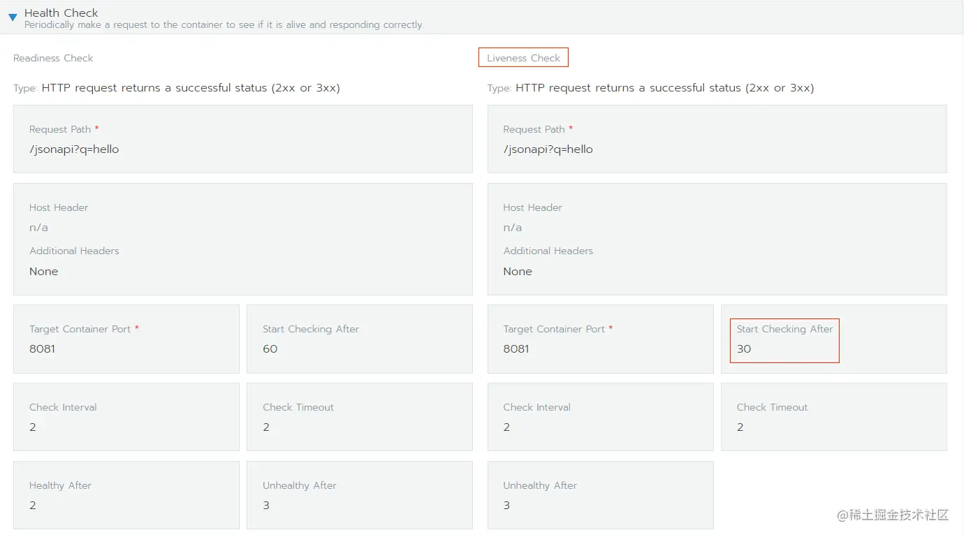 如下如所示,即Health Check中的Liveness Check检查时间。