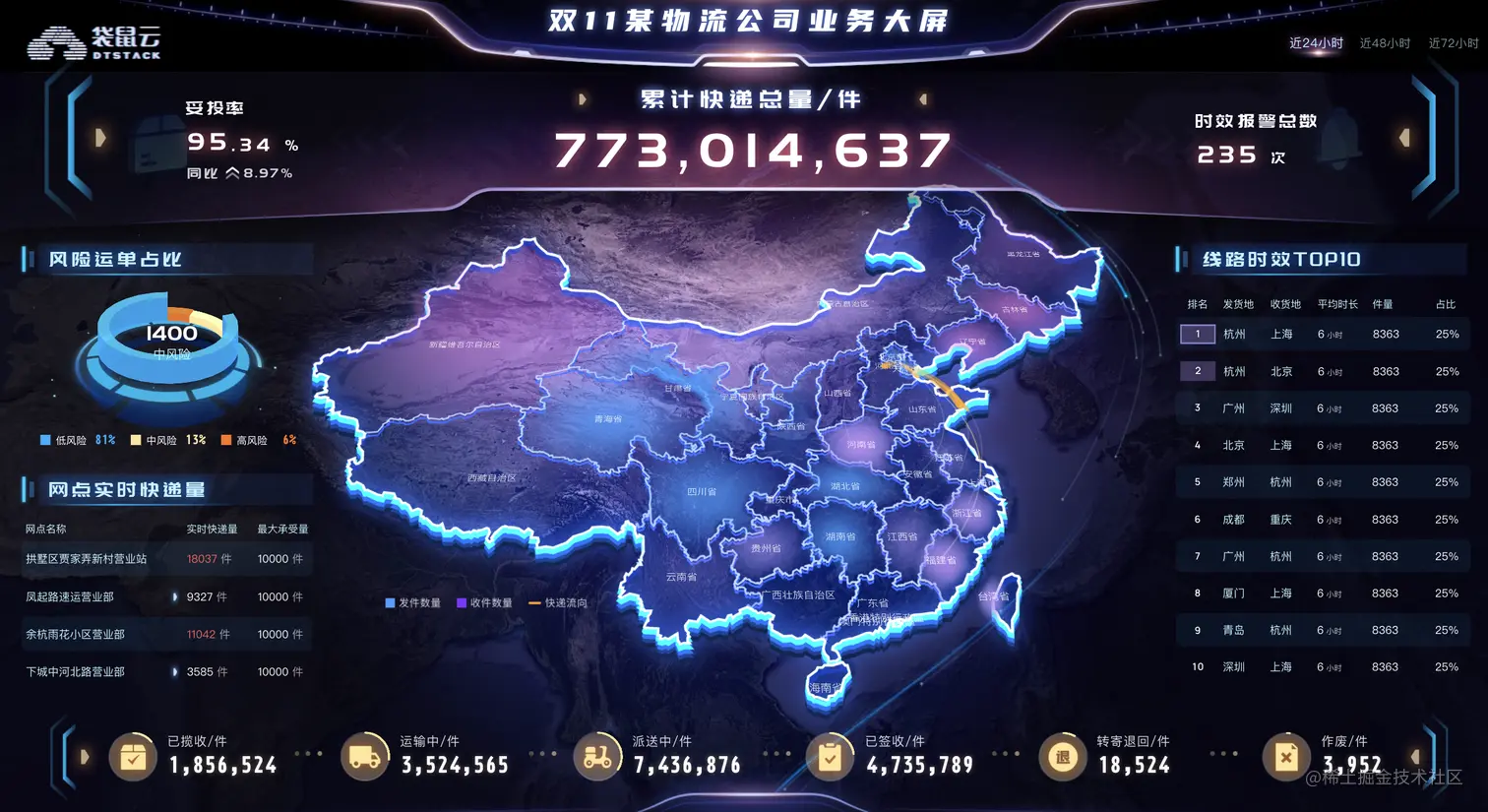 通过数据可视化的方式,将双十一的电商物流的各个信息: