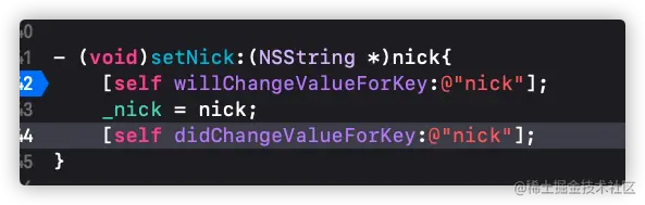 nick的监听但是nickName也的确变化了说明KVO会监听属性但是不会监听成员变量,属性和成员变量最大的区别就在于属性没有setter方法,得出结论KVO监听的是setter方法