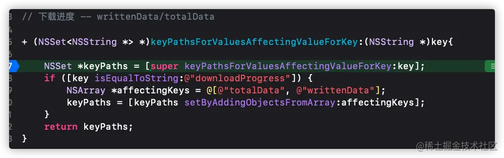 是否自动实现键值观察,模式是YES,如果需要手动实现键值观察则需要搭配willChangeValueForKey:和didChangeValueForKey:方法一起使用具体使用方法如下keyPathsForValuesAffectingValueForKey: