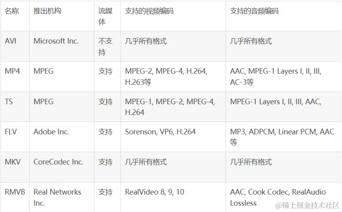 2)封装格式的主要作用是把视频码流和音频码流按照一定的格式存储在一个文件中。