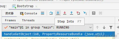 protected abstract Object handleGetObject(String key); 这是一个抽象方法,点击 Setp into 按钮跳转进到对应的具体实现方法中