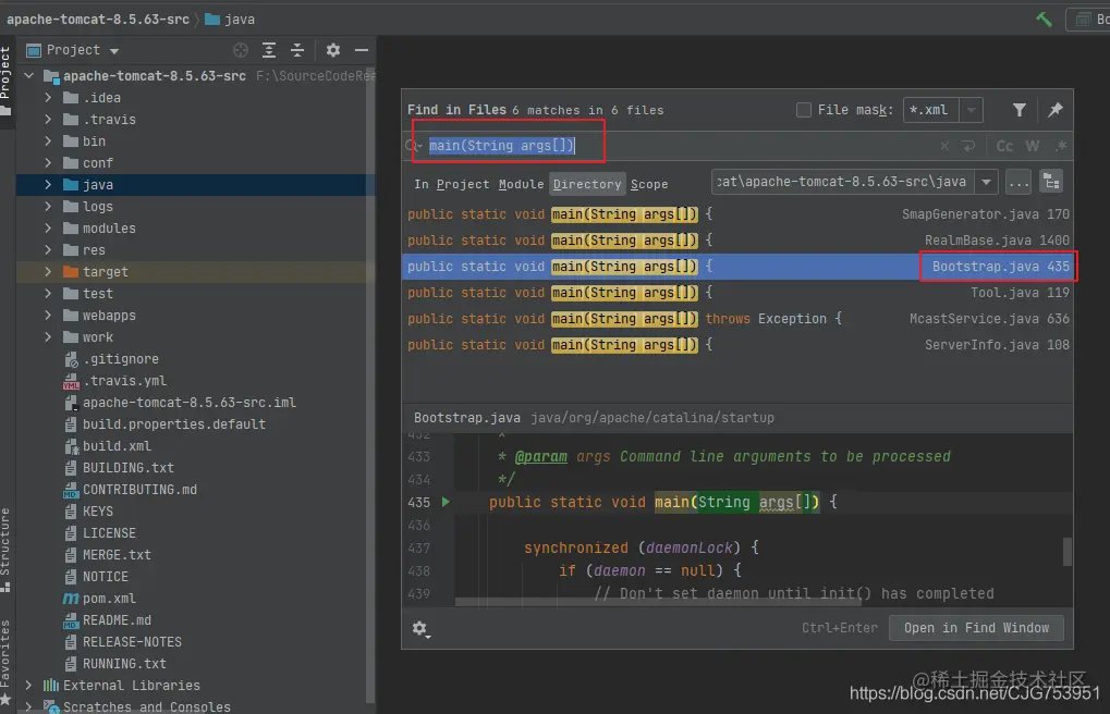 打开项目之后,全局搜索一下 main 方法,找到 tomcat 的入口