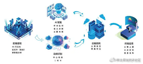 (1)“端”:海量森林监测数据在“端”侧相机产生。随着硬件性能升级,尤其是800万像素可见光和近红外监控设备的成功引入,观测距离大幅度提升,为林火检测提供了更为全面和精确的数据支撑。
