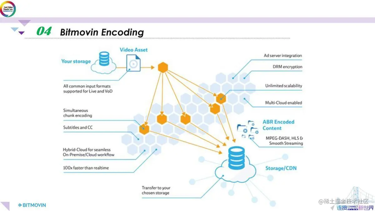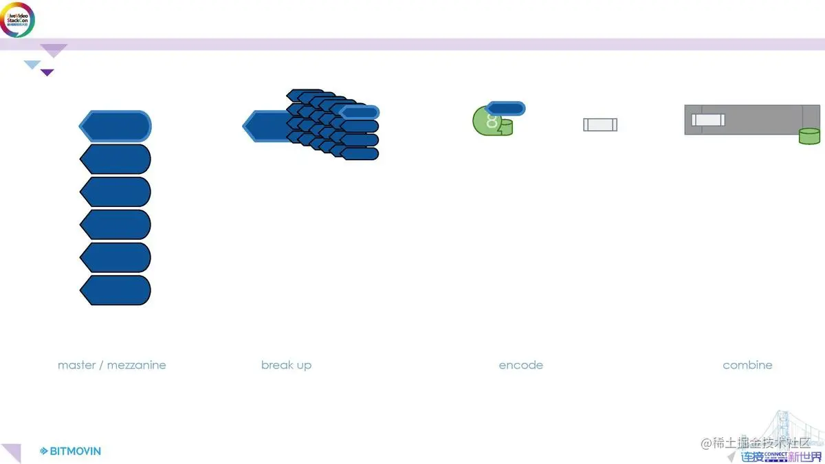 另外我们刚刚讲到Bitmovin切片分配编码的过程,这其实也很适合在云端上去使用,因为这可以很有效率地去同时用多台机器快速地编码那些很大的储存或者数量较多的视频。