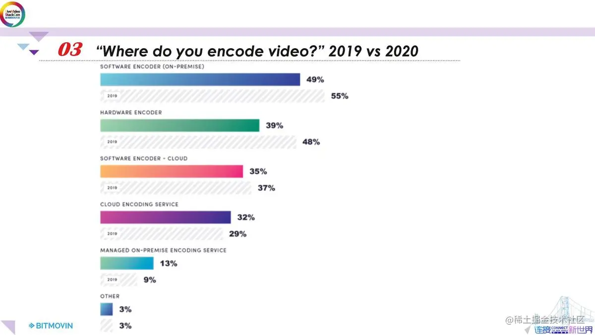 同时我们也对编码的用户去做了市场调查。我们在调查之中发现近两年来的趋势,比如软件或者是硬件编码在低端环境都出现了一些减少的现象。