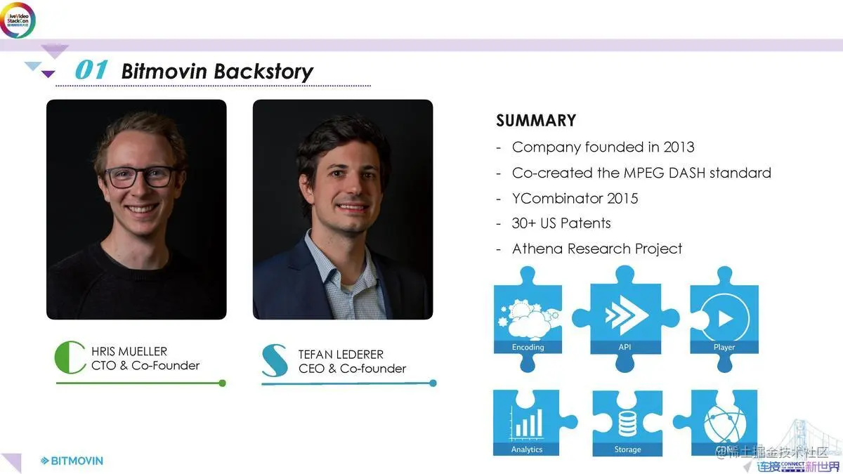 Bitmovin是一家在2013年创办的公司,左图这位是我们的CTO Chris Mueller,右边这位是我们的CEO Stefan Lederer。他们两位在2013年的时候合作推出MPEG-DASH的格式,也同时开始了Bitmovin这家公司。