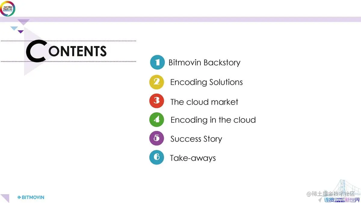 首先我会给大家介绍Bitmovin公司的背景,然后和大家分享我们的产品还有我们编码的功能;我们云端上市场的一些数据,在云端上编码的一些模式,最后分享一个我们客户的成功案例。