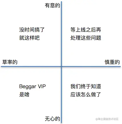 Martin Fowler把技术债分为四个象限,如下图所示: