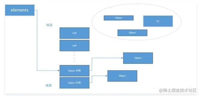 当进行大量的pop操作时,由于引用未进行置空,gc是不会释放的,如下图所示