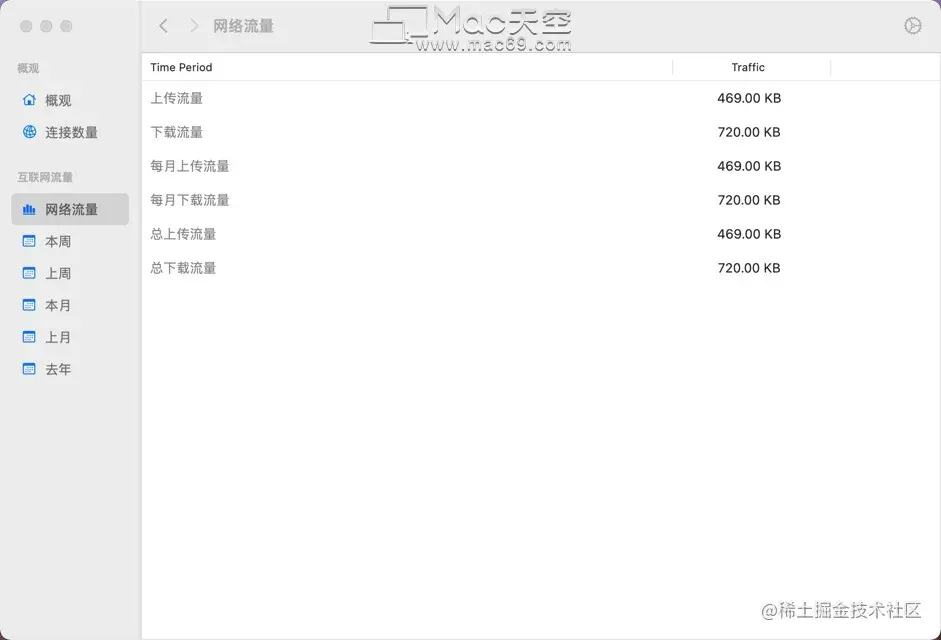 NetWorker跟踪您的每日,每月和每年的流量。这包括下载和上传流量。