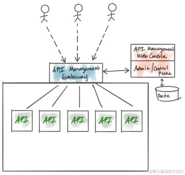 API管理当然也起到一些很好的用处,例如,它允许用户(潜在的API使用者)进行自助服务,签署不同的API使用计划(请考虑:在给定时间范围内,在指定价格点上,每个端点每个用户的调用次数)。有能力完成这些管理功能的基础架构就是网关(API流量所经过的)。在网关层,我们可以执行身份验证,速率限制,指标收集,其它策略执行等一系列操作。