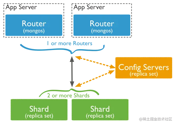 config servers:配置服务器存储群集的元数据和配置设置。 从MongoDB 3.4开始,配置服务器必须部署为副本集(CSRS)。