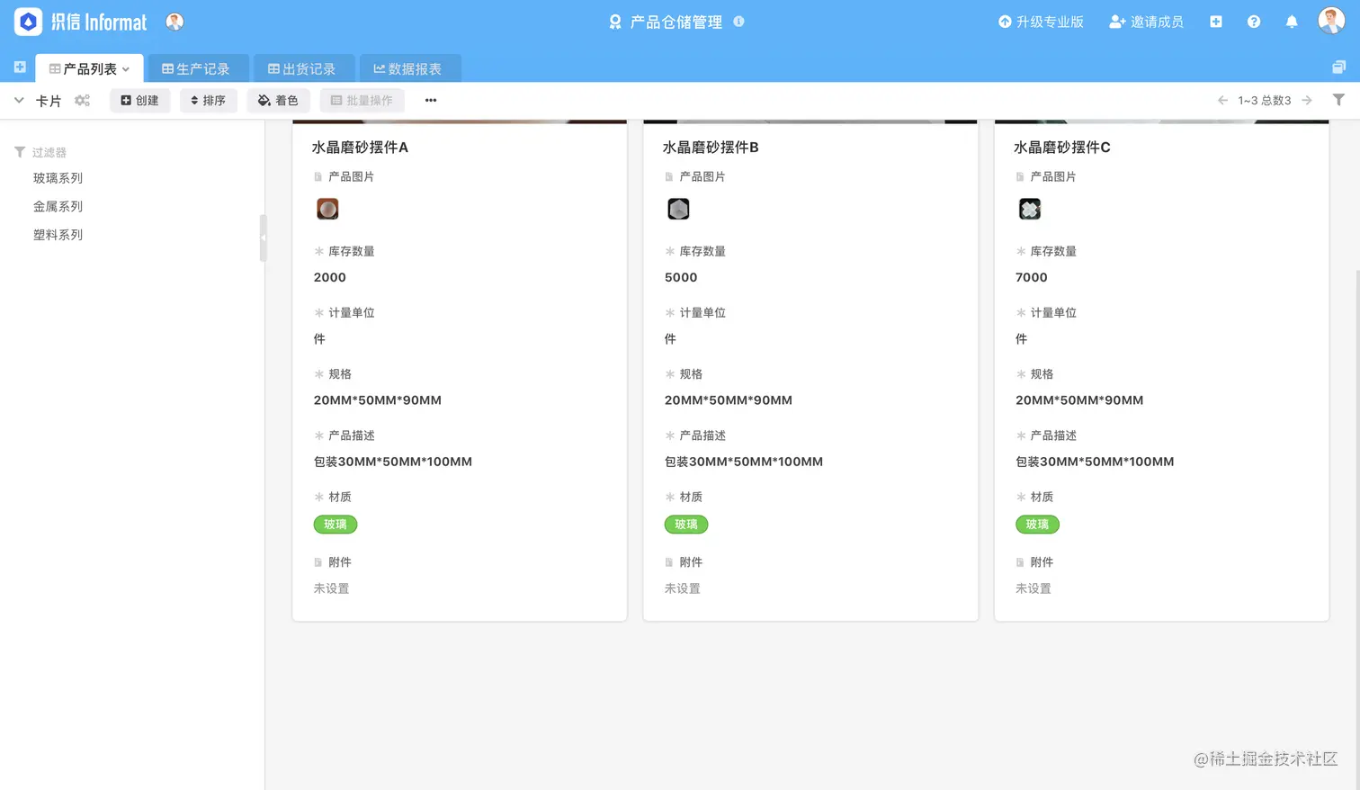 仓储管理系统主要包含产品列表、生产记录、出货记录、数据报表4个模块。(更多模块功能可根据企业需求进行扩展!)