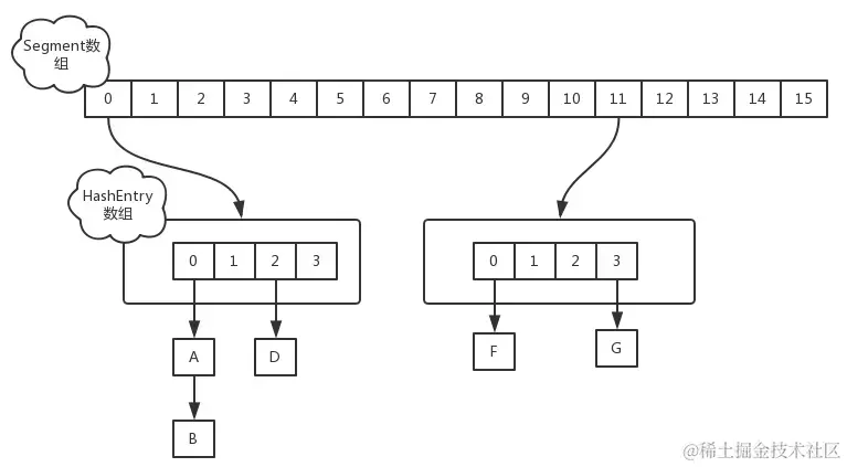 - 在 JDK1.7 中 ConcurrentHashMap 采用了