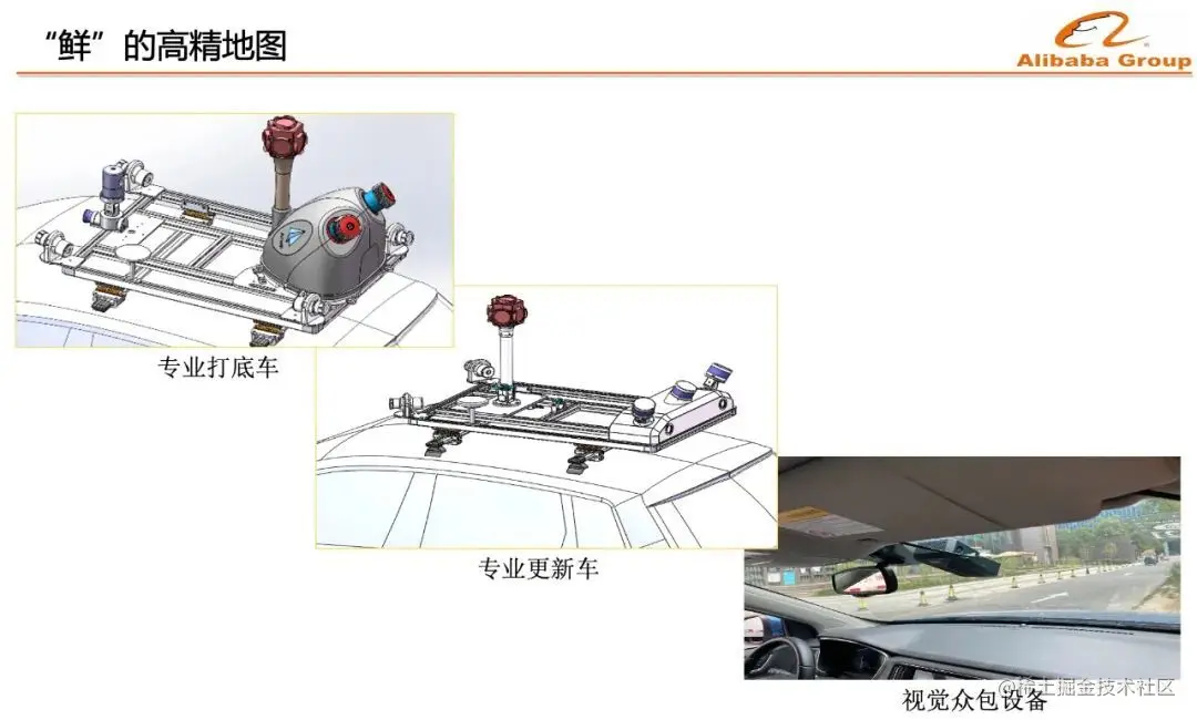 首先,最开始的时候要用成本相对昂贵的专业打底车,在全国道路范围内测量和采集高精地图数据。这种采集要同时保证相对精度和绝对精度。然后,用相对廉价的专业更新车来采集路面信息的局部变化(相对变化)图识,例如重新刷过地面标识,新竖立的牌、杆等。同时,我们也用更廉价的众包设备做更快速的采集更新。