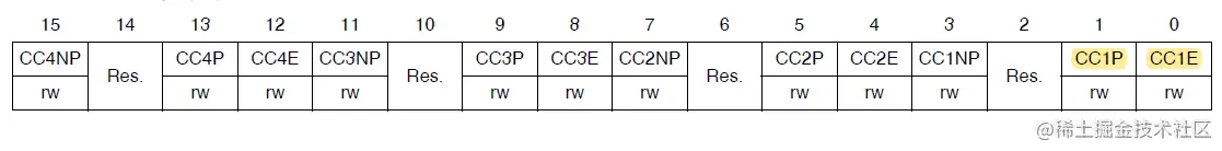 位 15、11、7、3 CCxNP:捕获 /比较x 输出极性 (Capture/Comparex output Polarity)