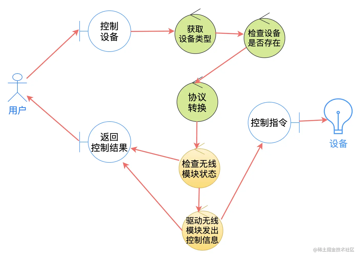 我们这里就简单画一下添加设备、控制设备和规则触发,这 3 个用例描述对应的鲁棒图(先忽略这几张图中的颜色):