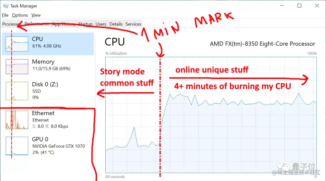 可以看到,联机版GTA 5,加载时调用大量CPU资源至少长达4分钟之久。