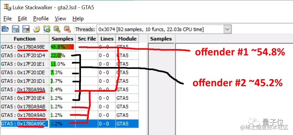为了找出到底那一部分程序卡住了CPU,他使用了工具Luke Stackwalker,对CPU任务堆栈进行采样分析。