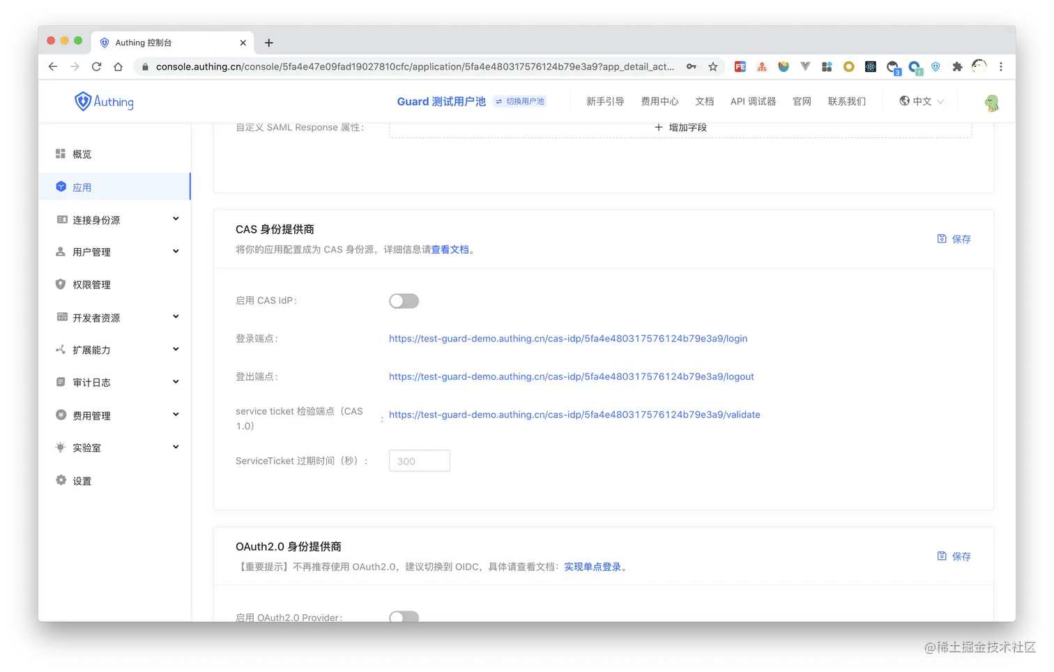 - 支持 CAS IdP,能将应用作为 CAS 身份提供商。