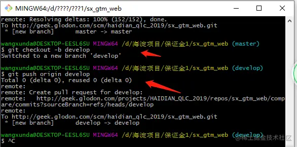 Bitbucket 创建仓库后 链接上远端仓库流程 A李士元 2021-03-13 385 阅读1分钟 然后 git checkout -b develop //创建并切换到新分支 git push origin develop //将分支链接到远端 然后再分支上开发就好了!