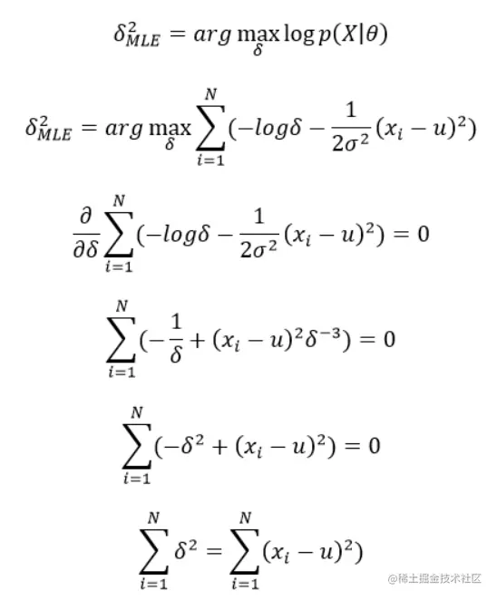 至此我们通过最大似然估计求导得出了均值u,接下来用同样的方法求解方差