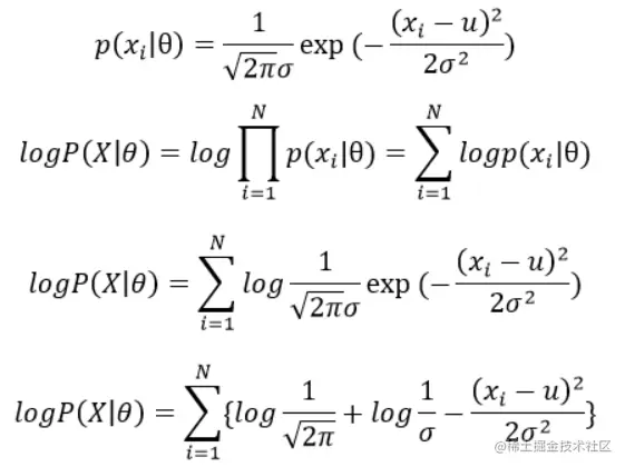 用最大似然估计求解参数,则对数似然函数为: