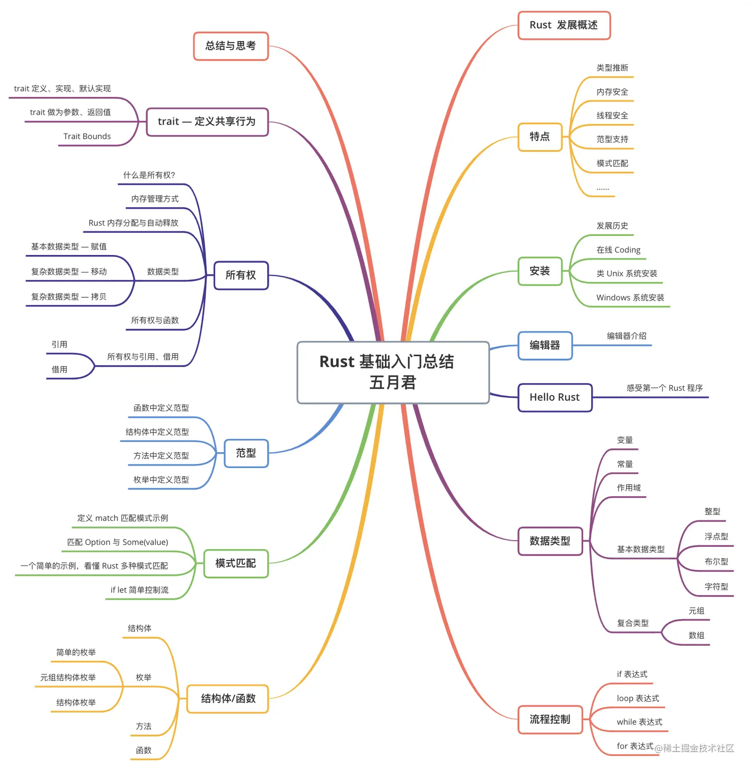 以上仅是关于 Rust 一些基础知识、独有概念的一些介绍,篇幅有限也还有很多内容没有写,欢迎关注【五月君】后续也会继续分享。