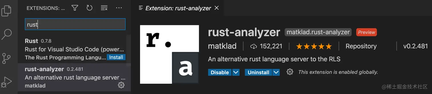 推荐两个 Rust 的 VS CODE 插件: rust-analyzer、rust。