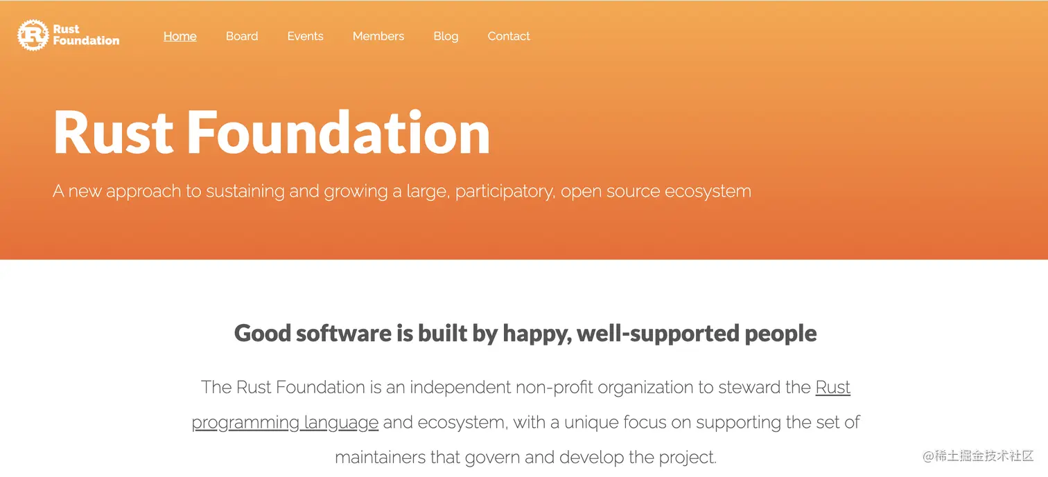 今年的 2 月 9 号,Rust 基金会 foundation.rust-lang.org/ 宣布成立,从 Mozilla 脱离出来,目前的基金会董事成员包括:亚马逊、Google、微软、Mozilla 和国内的华为,由五大科技巨头支持,对 Rust 来说总归是好事,可以为这门语言促进更好的发展,也有着更好的前景。