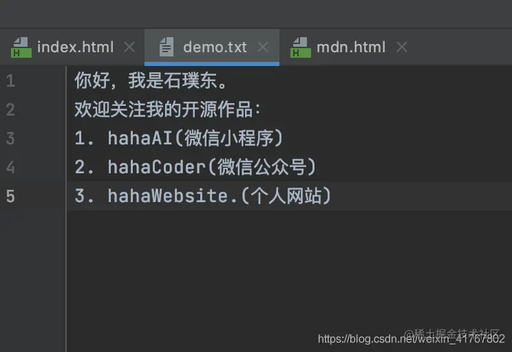 如上表所示,对于不同的文件我们可以采取不同的方法来完成读取操作,接下来,我们通过FileReader.readAsText()方法来读取一个文本,请看代码: