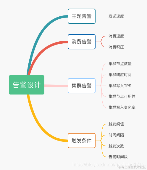 下图分别从主题、消费组、集群维度罗列了比较重要的告警项以及触发条件包括哪些方面。