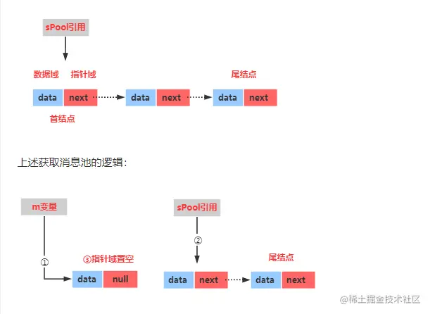 补充:MessageQueue本质上是一个单链表结构,翻译过来就是一个消息队列,用于存放Handler发送过来的消息,入列操作实际上就是链表的插入操作,我们可以通过源码来验证它。