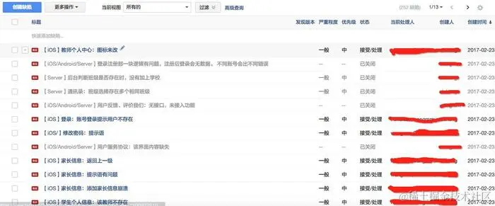如果不是专业的测试团队的话,相信我,这个缺陷管理功能完全已经足够使用,所有Bug缺陷的状态跟踪和管理,也是很专业的,能定位到版本、严重程度、优先级、当前状态、处理人和创建人等信息。