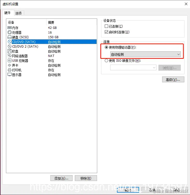 Ubuntu 安装VMware Tools选项显示灰色的正确解决办法 地表最强菜鸡 2021-03-14 490 阅读1分钟 百度了一天,重新安装了vm,在csdn逛了又逛,结合无数篇大神文章,最后自己成功琢磨出了真正能点亮灰色按钮的方法。 简单实在,大神们的方法实在千秋万变,一个比一个复杂,最后只能实现成功拖拽,而复制粘贴却还是不行。 首先问题如下: 解决办法如下: 1.关闭虚拟机; 2.在虚拟机设置分别设置CD/DVD、CD/DVD2、软盘为自动检测三个步骤; 3.再重启虚拟机,灰色字即点亮。 然后我们就可以根据提示正常安装VMware Tools了。
