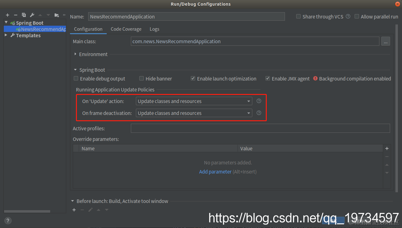 具体步骤:顶部菜单- >Edit Configurations->SpringBoot插件->目标项目->勾选热更新。