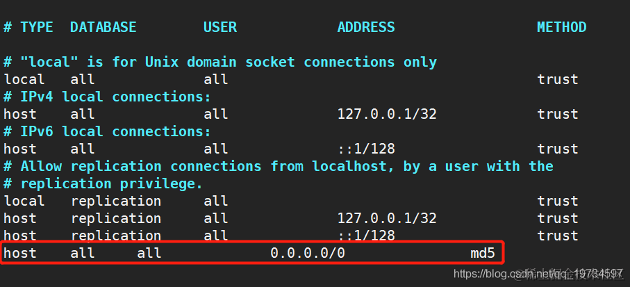 $ vim /usr/local/postgresql/data/pg_hba.conf