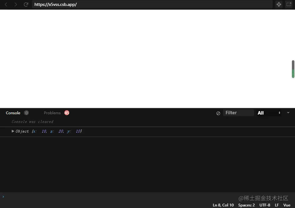 同名,合并并以组件数据优先,因此输出结果为 x=10, z=20, y=10