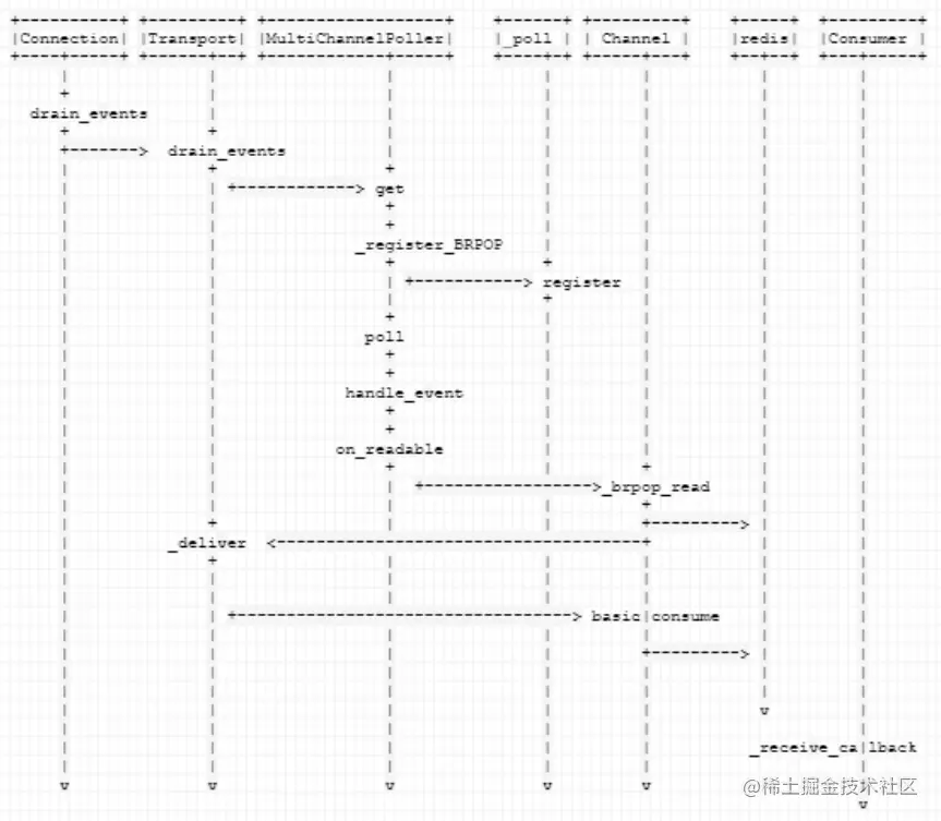 |Connection| |Transport| |MultiChannelPoller| |_poll | | Channel | |redis| |Consumer |